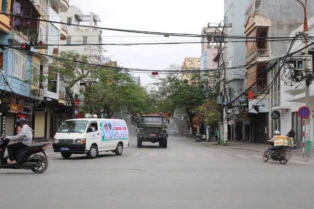 Trong sáng đầu tiên thực hiện cách ly toàn xã hội, phố phường vắng hoe như những ngày ph