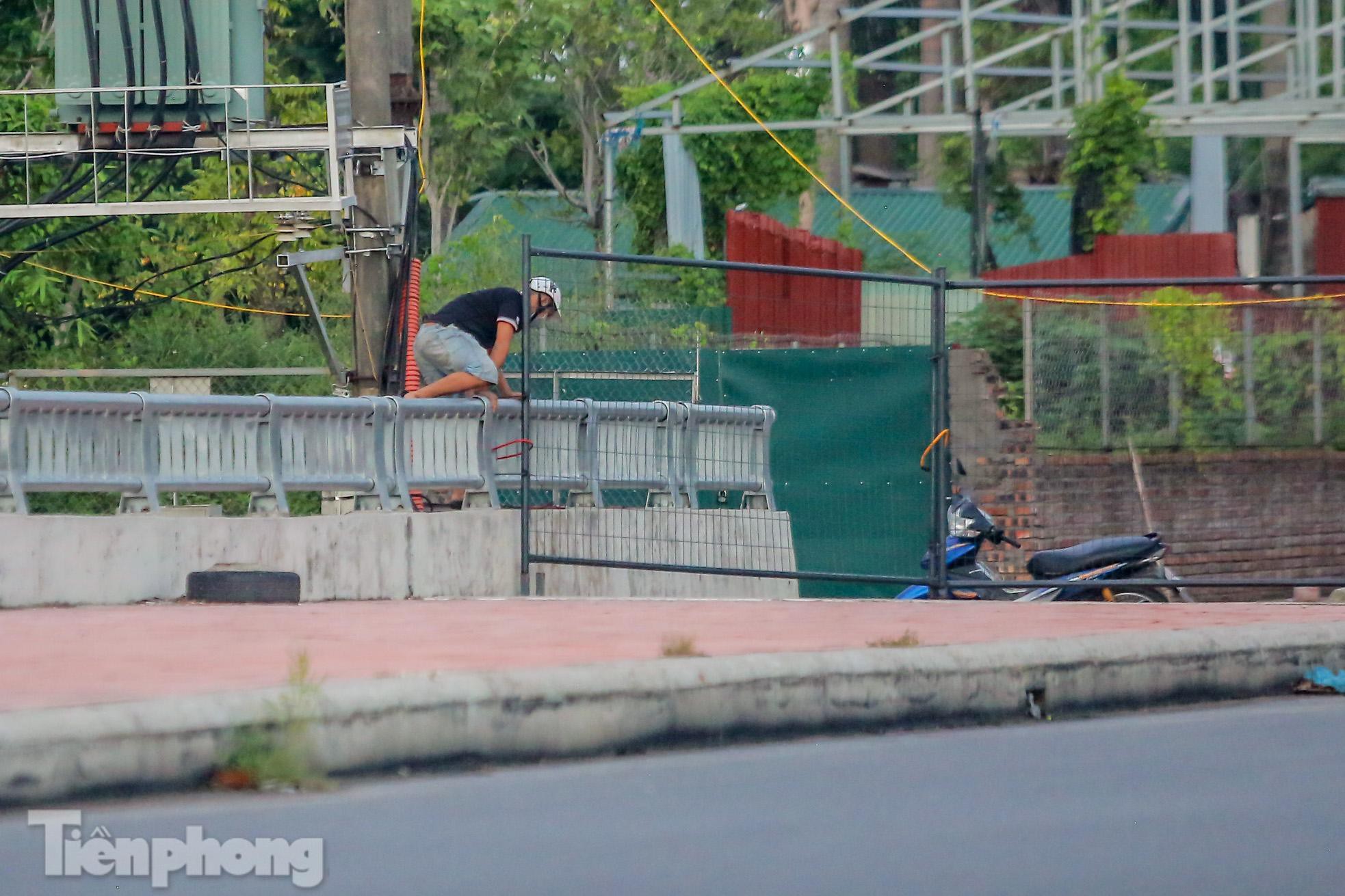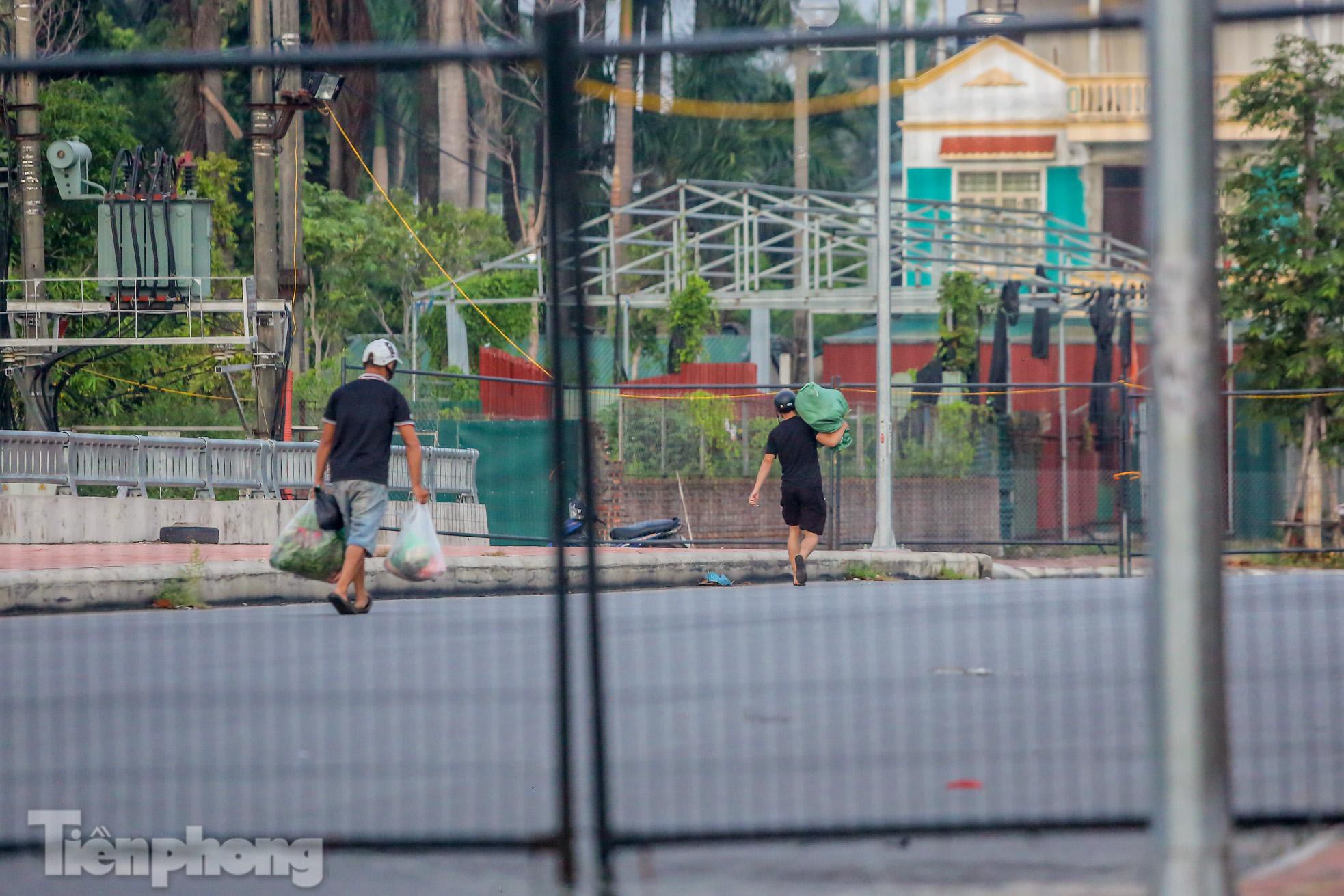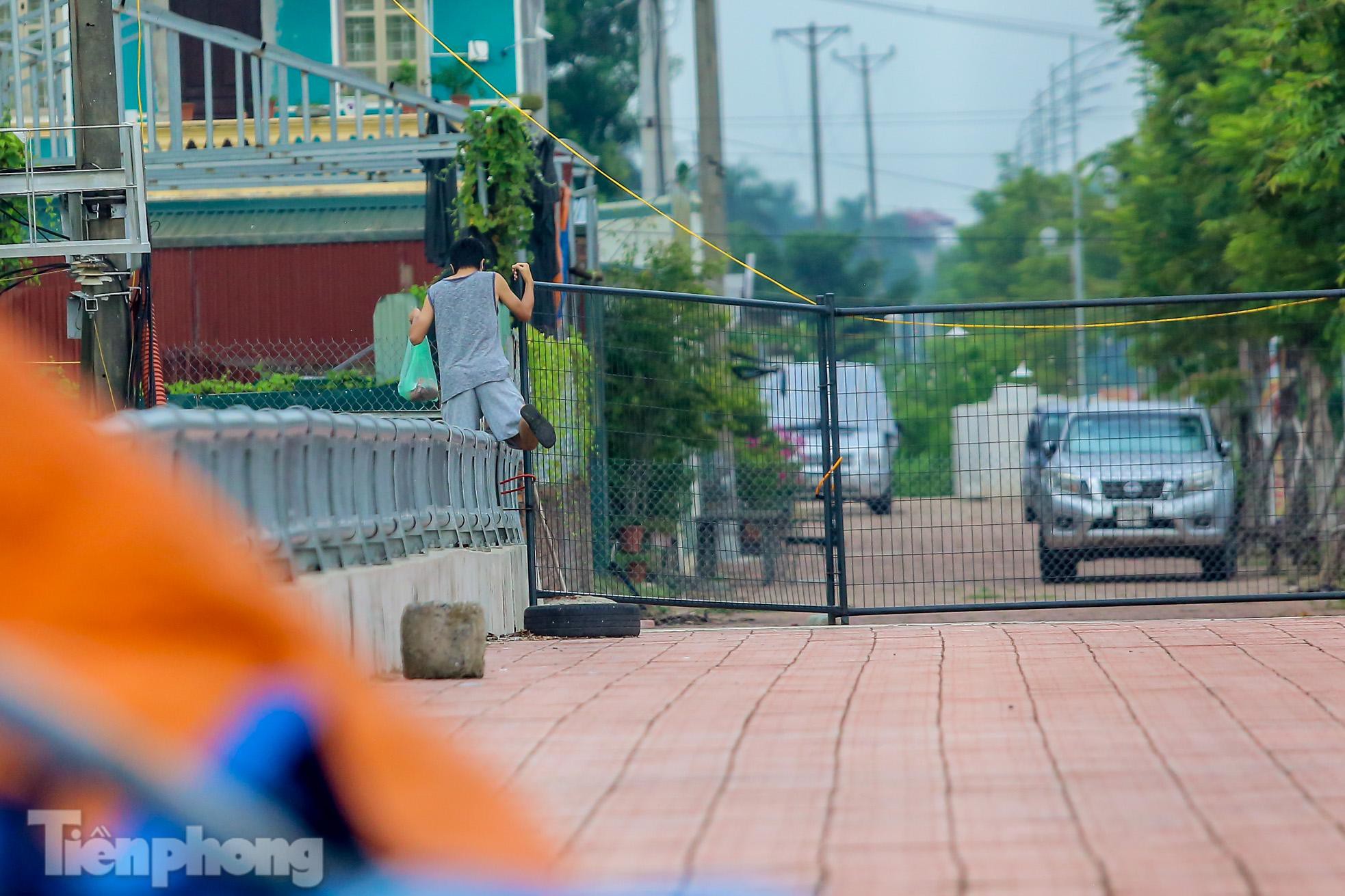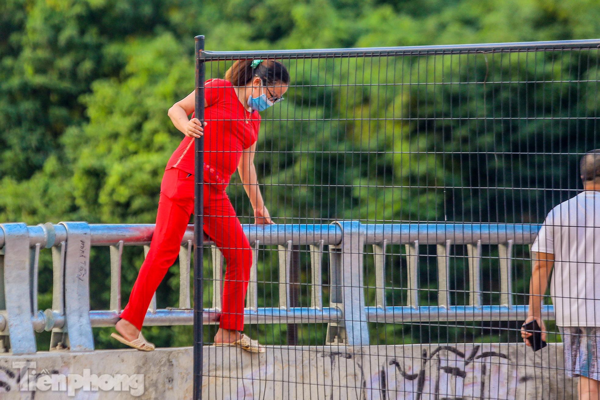 Mặc dù đã dựng chốt cứng tại nhiều điểm nhưng nhiều người dân tìm cách vượt rào đi lại giữa "vùng xanh" và "vùng đỏ" trên cầu Phố Viên (phường Cổ Nhuế 2, quận Bắc Từ Liêm, Hà Nội) bất chấp quy định phòng chống dịch.