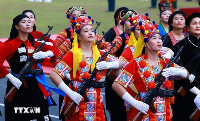 Hình ảnh những cô gái xinh đẹp đầy mạnh mẽ trong lễ diễu binh, diễu hành kỷ niệm 70 năm Chiến thắng Điện Biên Phủ (7/5/1954 - 7/5/2024) đã thu hút sự chú ý của nhiều người.