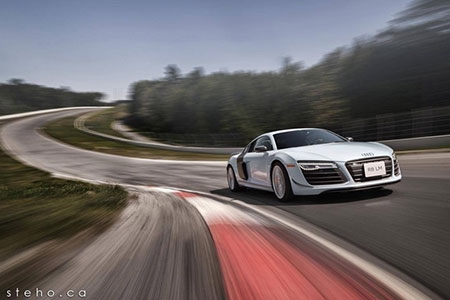 Siêu xe Audi R8 LM xé gió trên đường đua. |