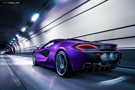 McLaren 570S màu tím nổi bật càng cuốn hút với shoot hình chuyển động trong đường hầm. |