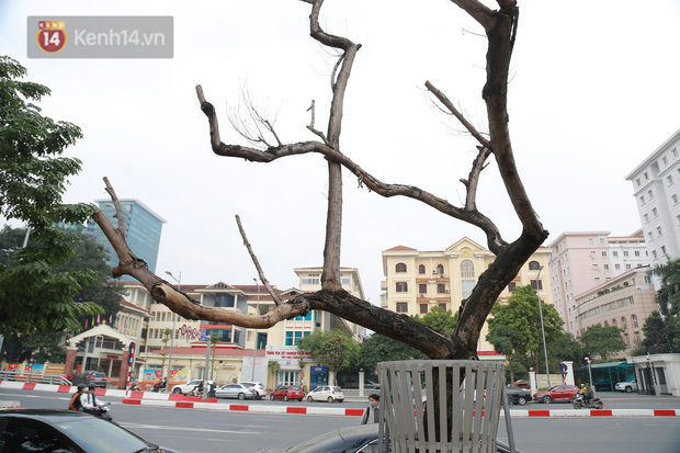 Nhiều cây sưa đỏ có tuổi đời khoảng 20 năm trên đường Nguyễn Văn Huyên (quận Cầu Giấy, Hà Nội) đang phát triển bình thường thì héo rũ lá rồi chết khô khiến nhiều người đi qua không khỏi xót xa, tiếc nuối.