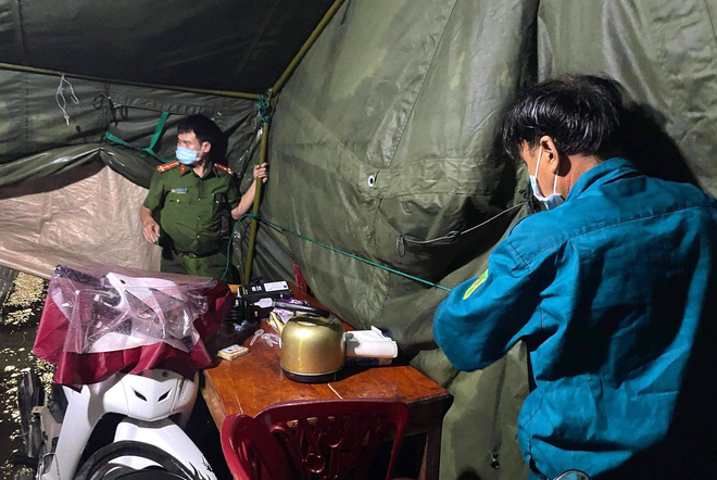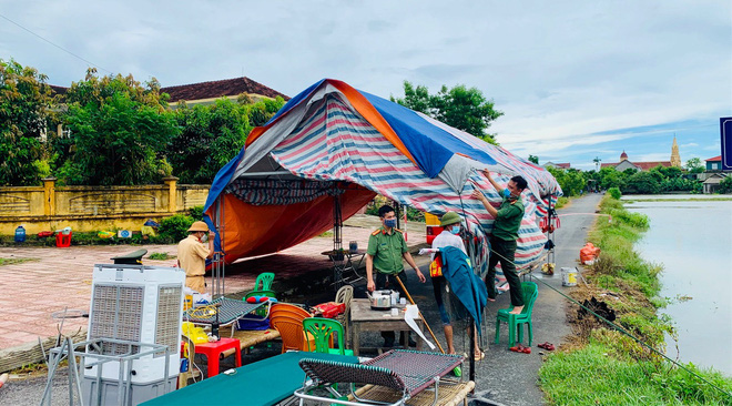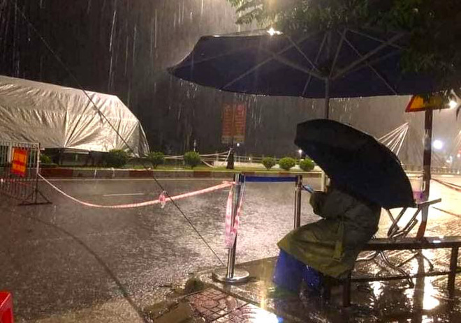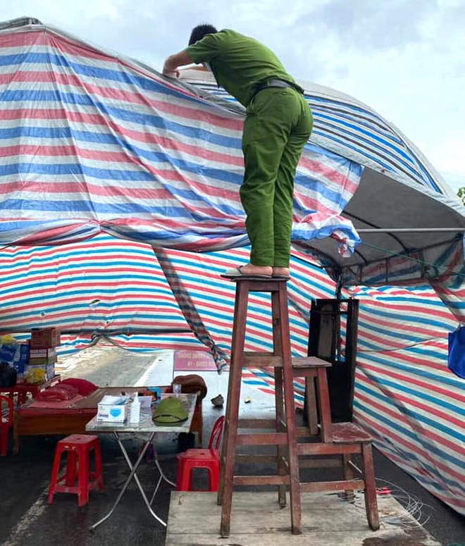 Hình ảnh những chiến sỹ công an, quân đội trực chốt Covid-19 trong mưa bão, níu tay giữ cho lều đừng bị gió bay thổi bay gây xúc động mạnh trong lòng người dân.