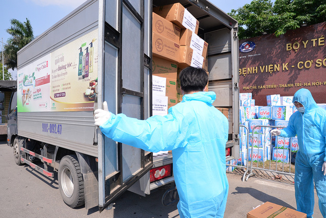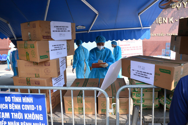 Các vật dụng hàng ngày, lương thực, nước uống liên tục được các đơn vị, cá nhân đưa tới để tiếp sức, ủng hộ cho bệnh viện K - Tân Triều trong những ngày bị cách ly.