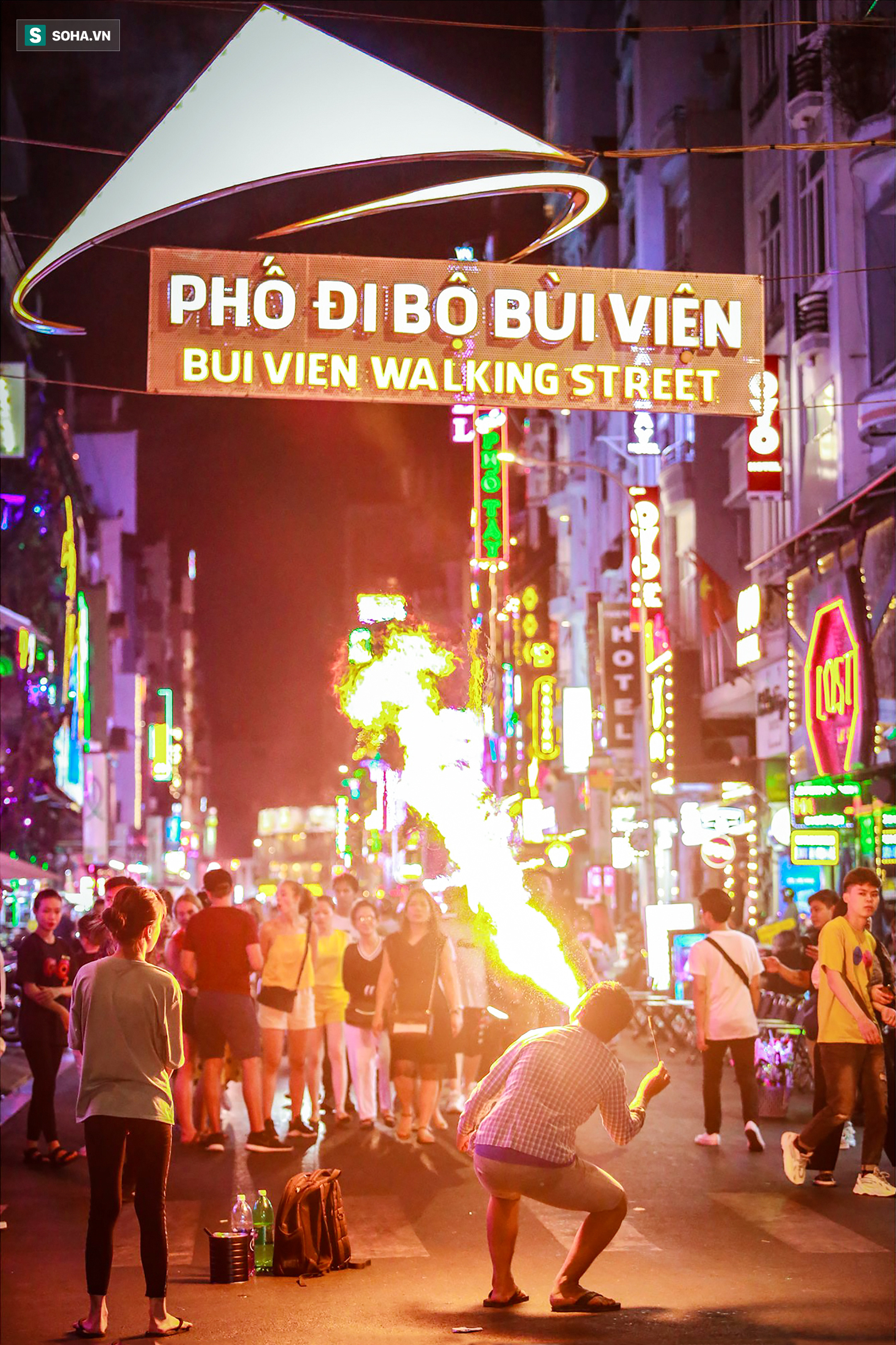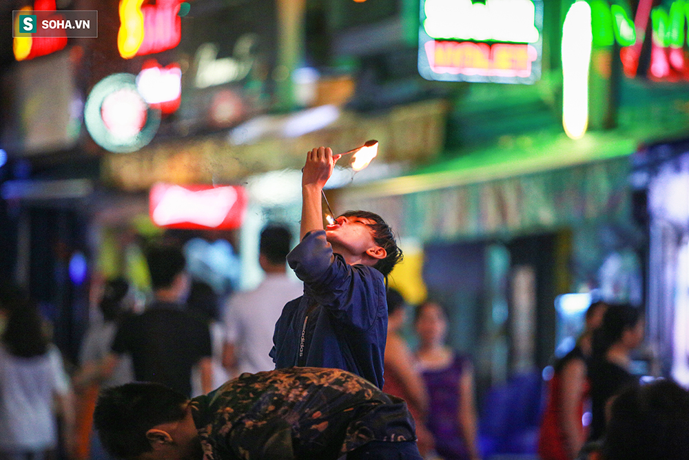 0h, phố Tây Bùi Viện bắt đầu náo nhiệt, ồn ào với đủ tiếng nhạc xập xình. Đây là lúc những đứa trẻ bước ra "sân khấu đường phố" diễn trò phun lửa... mưu sinh ở Sài Thành.
