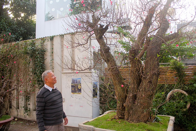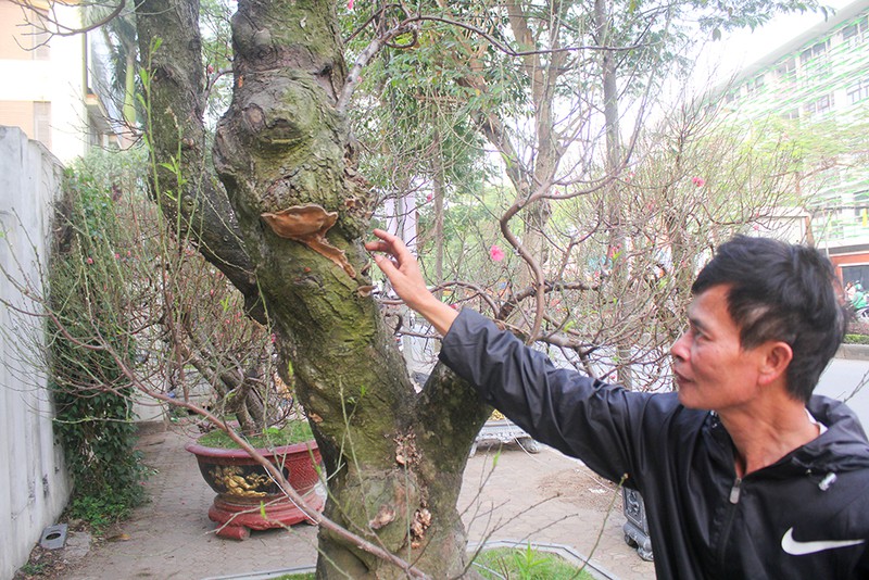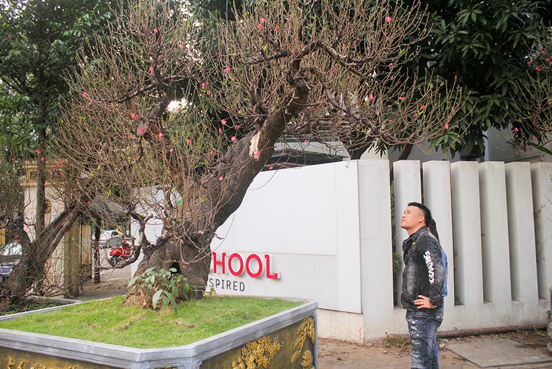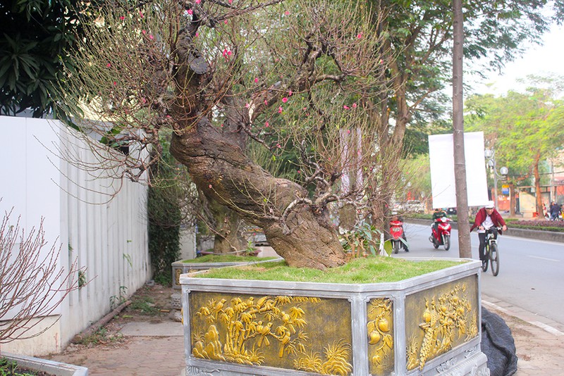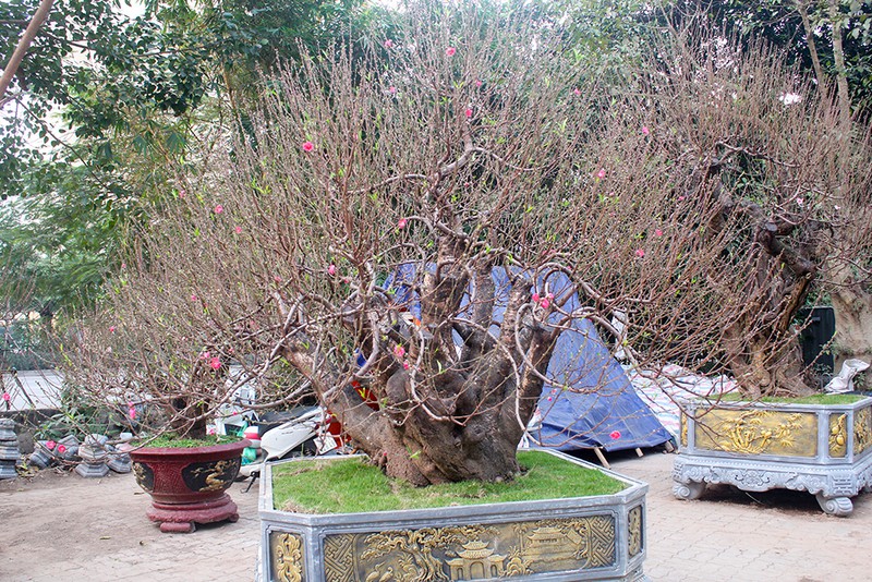 Khu trưng bày của một nhà vườn trên đường Lạc Long Quân (Tây Hồ, Hà Nội) đã thu hút không ít "tay chơi" đào thế thủ đô tới chiêm ngưỡng bởi những gốc đào có tuổi đời trăm năm với kích cỡ "khủng" và hình dáng độc đáo.