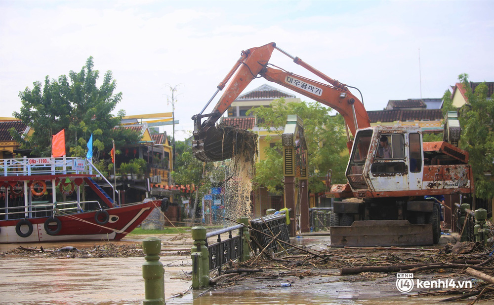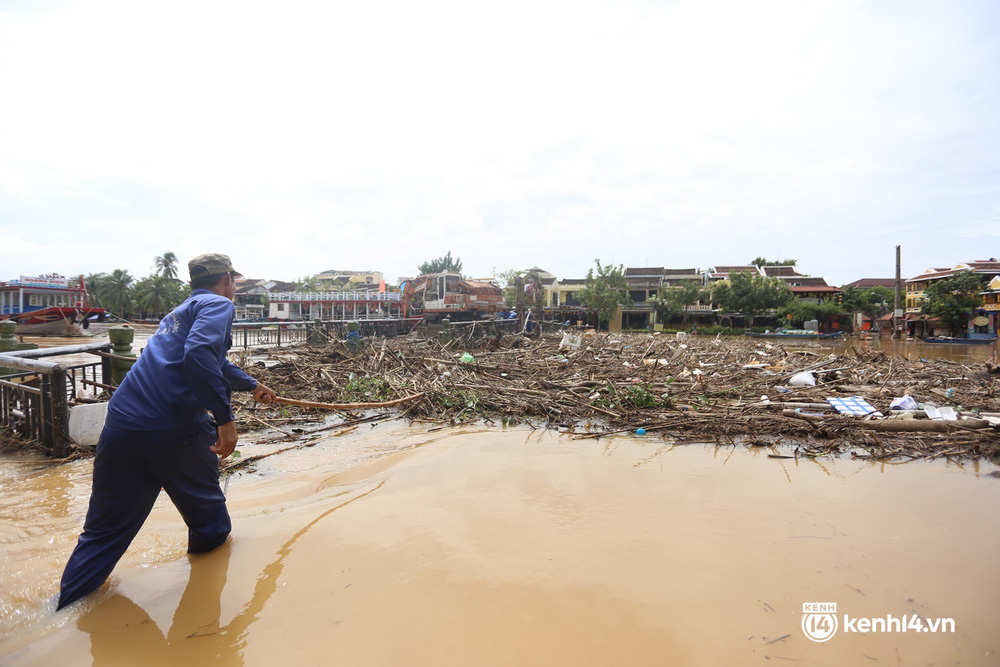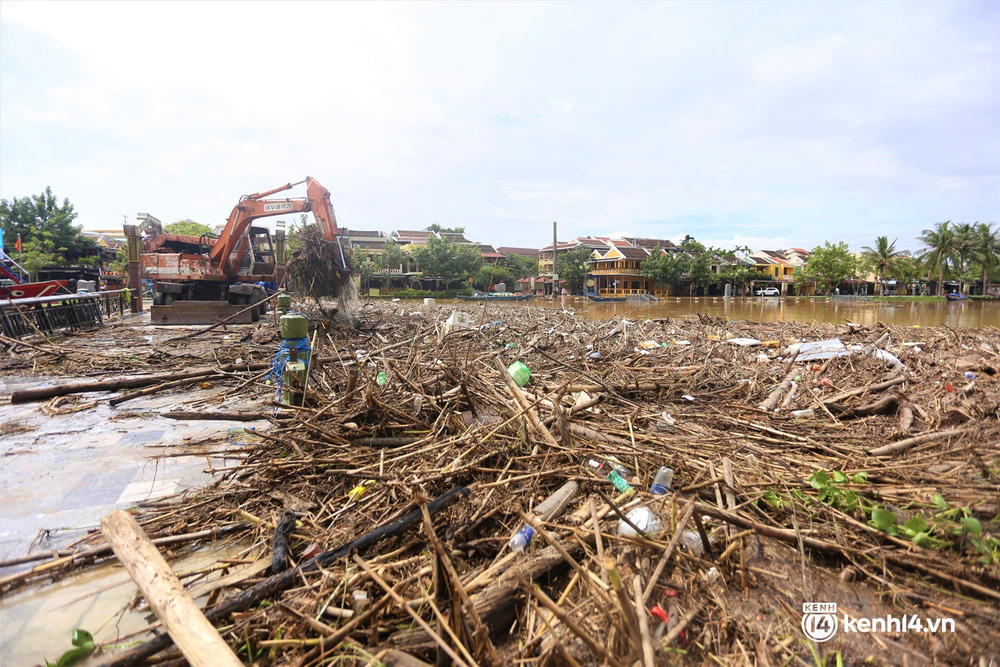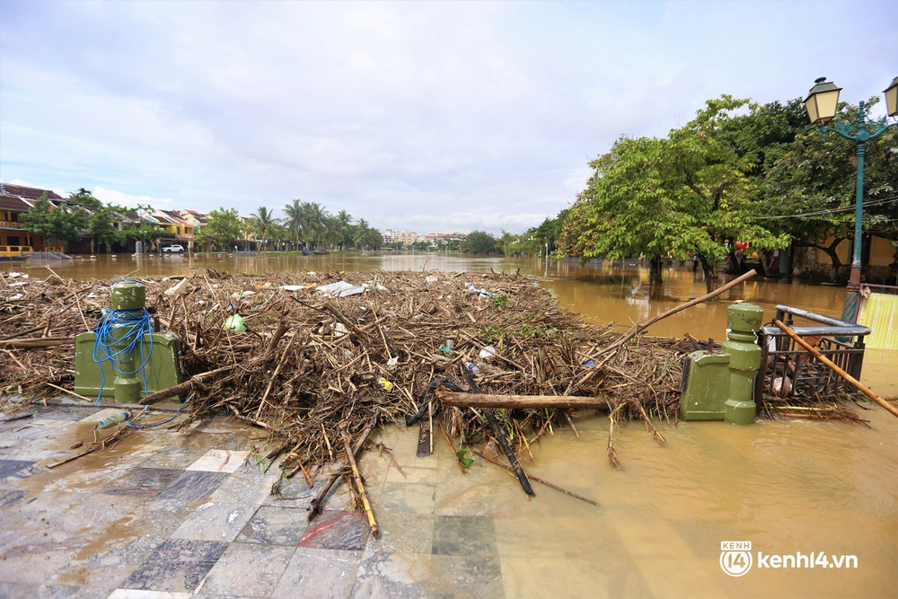 Sáng 18/10, nước lũ bắt đầu rút ở phố cổ Hội An (Quảng Nam), để lại hàng chục tấn rác thải ngập ngụa tại sông Hoài và các con đường xung quanh.