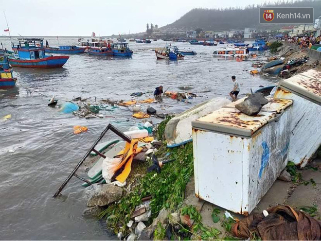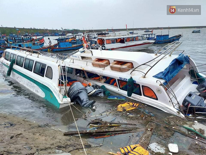 Tại bến cảng, dù các tàu thuyền đã được neo đậu cẩn thận nhưng vẫn không tránh khỏi sức tàn phá khủng khiếp của bão số 9, một số tàu đã bị chìm, người dân phải xuống tàu để bảo vệ tài sản của mình.