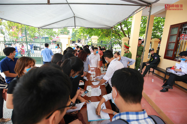 Rất đông người được triệu tập đến phiên xét xử gian lận thi cử tại TAND tỉnh Hoà Bình, an ninh thắt chặt là những hình ảnh đầu tiên trong ngày đầu xét xét vụ án gian lận thi cử gây rúng động dư luận cả nước.