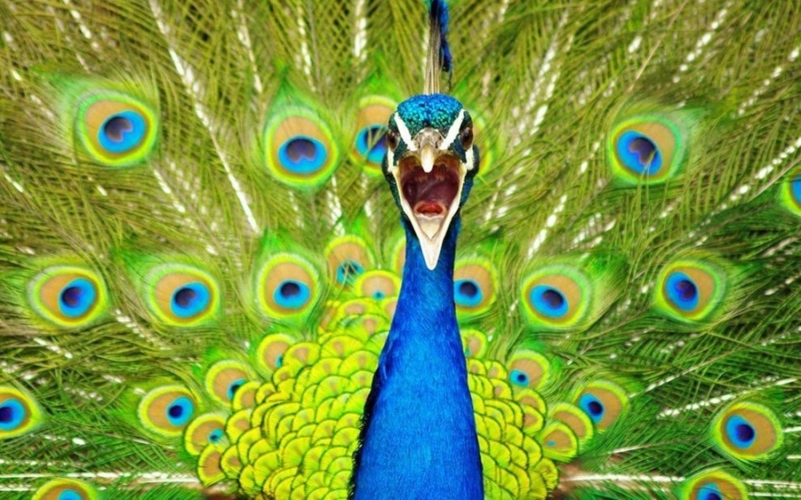 2. Khoảnh khắc tức giận của con công với bộ lông rực rỡ. |