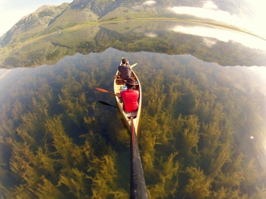 5. Chiếc thuyền đang "bay trên không trung"? Không phải đâu, bức ảnh chụp dòng sông thủy tinh Lago del Matese ở Caserta, phía nam Italia khiến nhiều người ngỡ rằng chiếc thuyền đang “bay” trên một khu rừng rậm. Thực ra đó là thảm thực vật dưới lòng sông, mặt nước trong suốt khiến chứng ta có thể nhìn thấy mọi thứ bên dưới. |