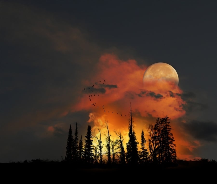 17. Nhiều người sẽ nghĩ “cảnh hoàng hôn” trong bức ảnh này đã được photoshop quá đà, mặt trời đã bị thay thế bằng mặt trăng để tạo ta cảm giác huyền ảo. nhưng thực ra không phải vậy, đám cháy bên dưới là nguyên nhân của tất cả mọi thứ. |