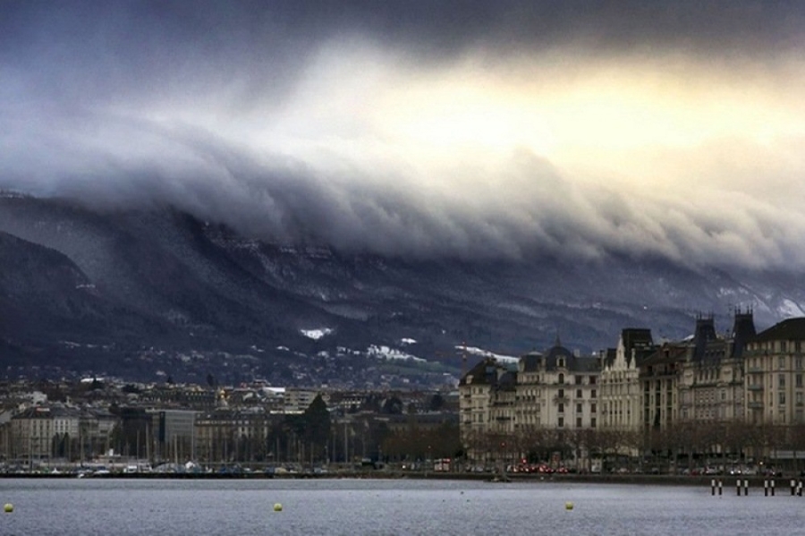 18. Những đám mây vờn trên đỉnh núi ở Geneva, Switzerland khiến chúng ta có cảm giác một trận sóng thần dữ dội đang chuẩn bị quét qua ngôi làng nhỏ bé dưới chân núi. |