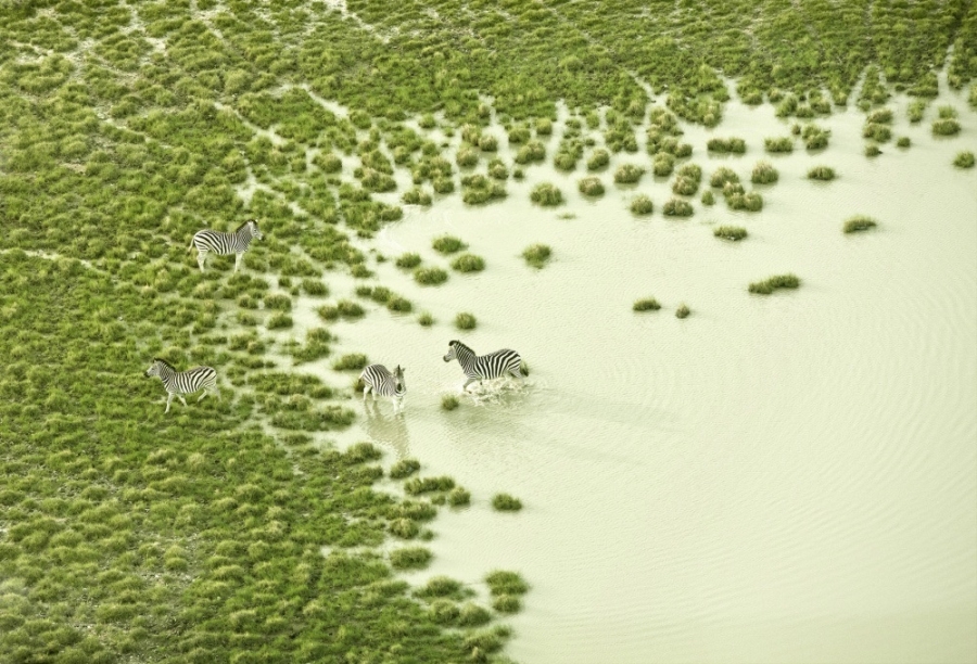 21. Những con ngựa này biết đi trên mặt nước? Không phải đâu, đây chỉ là hình ảnh bãi cỏ sau một cơn mưa lớn thôi. |