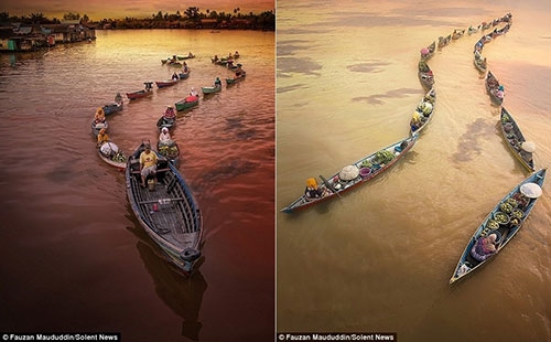 Nhiếp ảnh gia Fauzan Maududdin đã ghi lại những hình ảnh ấn tượng về chợ nổi Lok Baintan, Nam Borneo, Indonesia.