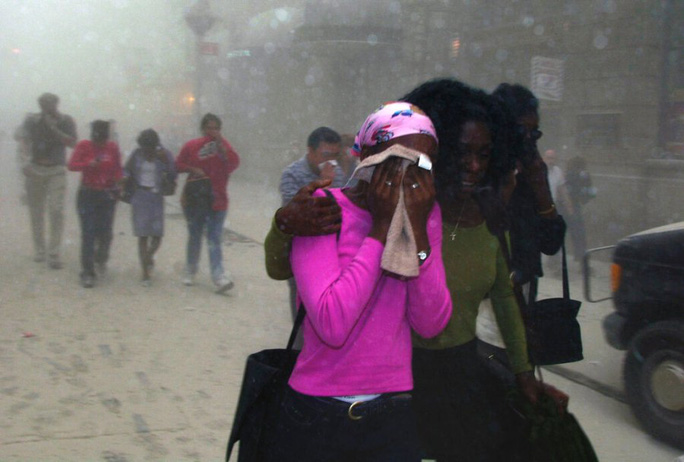 Những bức ảnh ghi lại sự nghiêm trọng, hỗn loạn và cảm xúc trong ngày 11-9 ở mọi cấp độ, từ quang cảnh khói bốc lên trên đường chân trời của New York đến cận cảnh khuôn mặt lo lắng, nhem nhuốc của một người phụ nữ đang chạy vội trên con phố phủ đầy bụi tro.