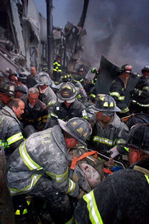 Một số bức ảnh khác thể hiện cái nhìn sâu sắc hơn về nỗi đau nhưng cũng mang tính nhân văn, ví dụ như biểu cảm la hét của 1 lính cứu hỏa bị thương, một người phụ nữ đi qua cơn mưa mảnh vỡ từ tòa tháp trong khi tay đang ôm vai người khác.