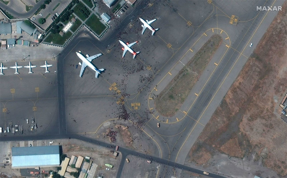 Một ngày sau khi Taliban chiếm giữ thủ đô Kabul, hàng trăm người đã tràn ra đường băng tại sân bay quốc tế Kabul, tuyệt vọng tìm kiếm một con đường thoát khỏi Afghanistan. Một số thậm chí liều mạng bám vào thân máy bay quân sự khi máy bay đang di chuyển vào đường băng.