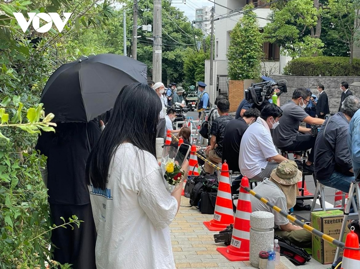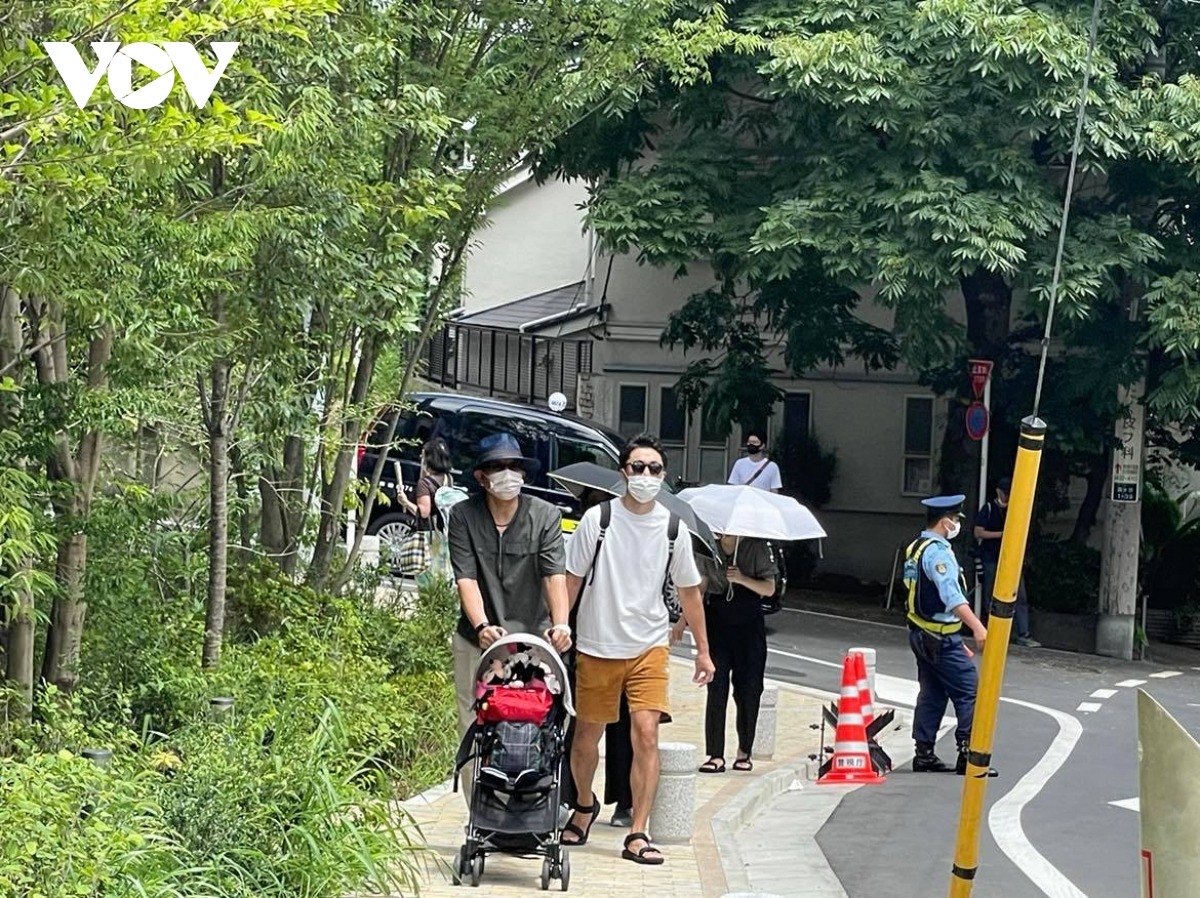 Tại khu vực nhà riêng của cựu Thủ tướng Abe Shinzo ở khu phố Tomigaya, quận Shibuya, Tokyo, trong những ngày qua rất nhiều người qua lại để cầu nguyện và chào ông lần cuối.