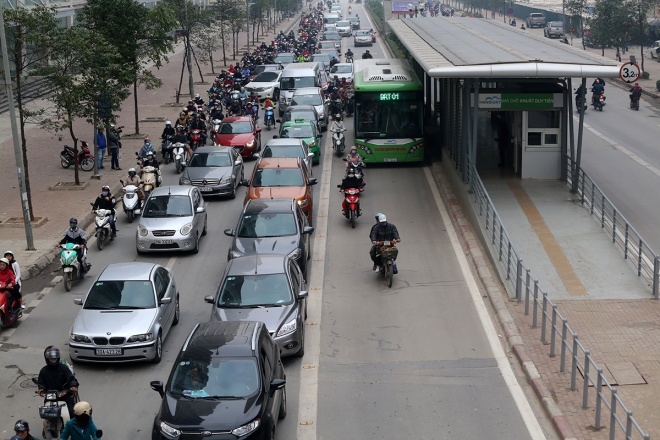 Mặc dù đông đảo hành khách đã đón nhận và sử dụng buýt nhanh, theo Tổng công ty vận tải Hà Nội, loại hình vận tải công cộng hiện đại này đã gặp nhiều khó khăn, đặc biệt là ý thức chấp hành luật giao thông của một bộ phận người dân còn kém. Các phương tiện thường xuyên chạy tạt đầu, lấn làn buýt nhanh, kể cả khi đường thông thoáng. Nhiều xe máy đi lên cầu vượt đã có biển cấm vào giờ cao điểm. Một số nút giao thông hệ thống đèn tín hiệu chưa hợp lý, đèn tín hiệu các hướng đi lệch pha nhau gây cản trở vận hành của xe buýt nhanh. |