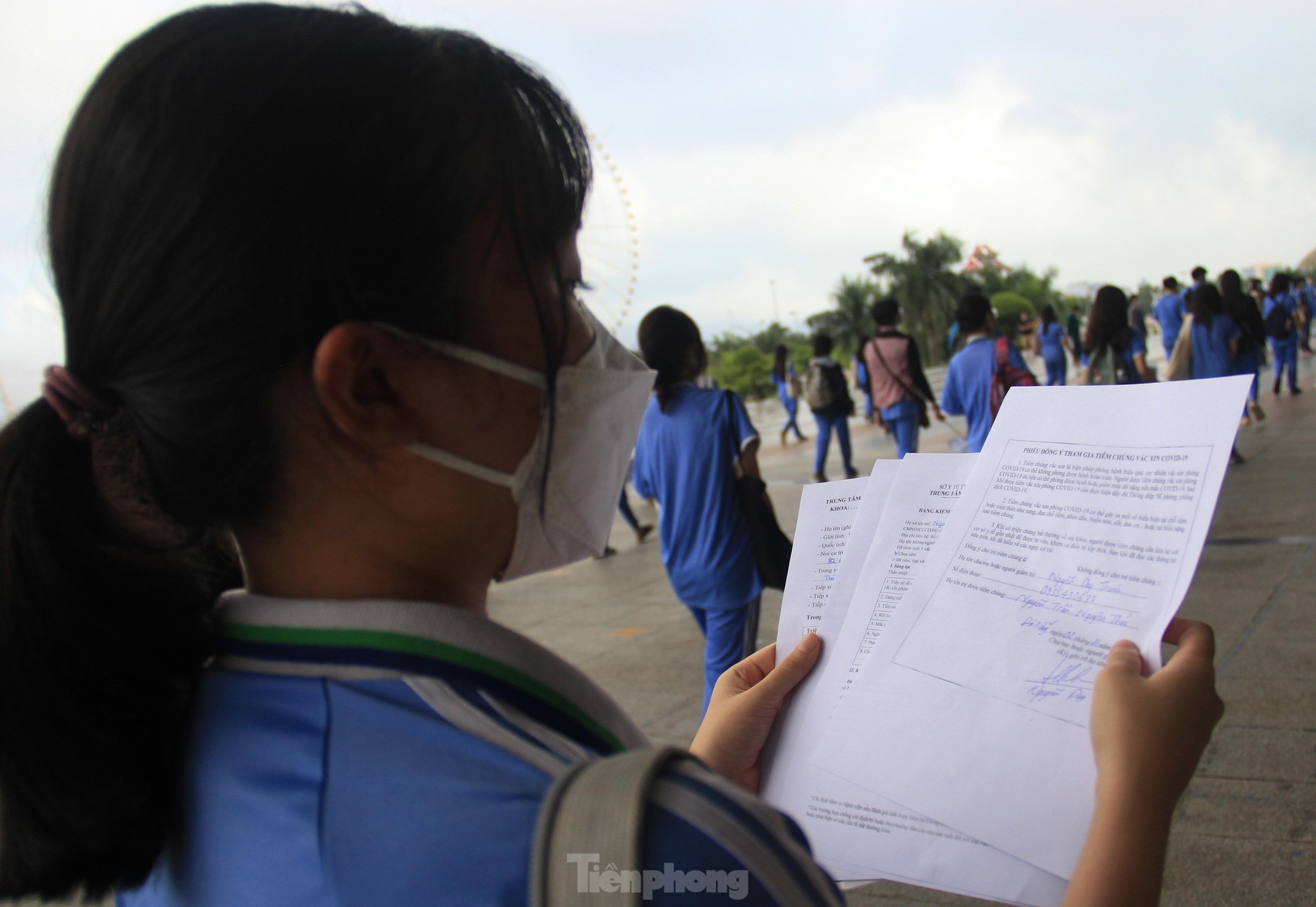 Các em mang theo các giấy tờ như bảng kiểm tra sức khỏe, phiếu đồng ý tiêm chủng…