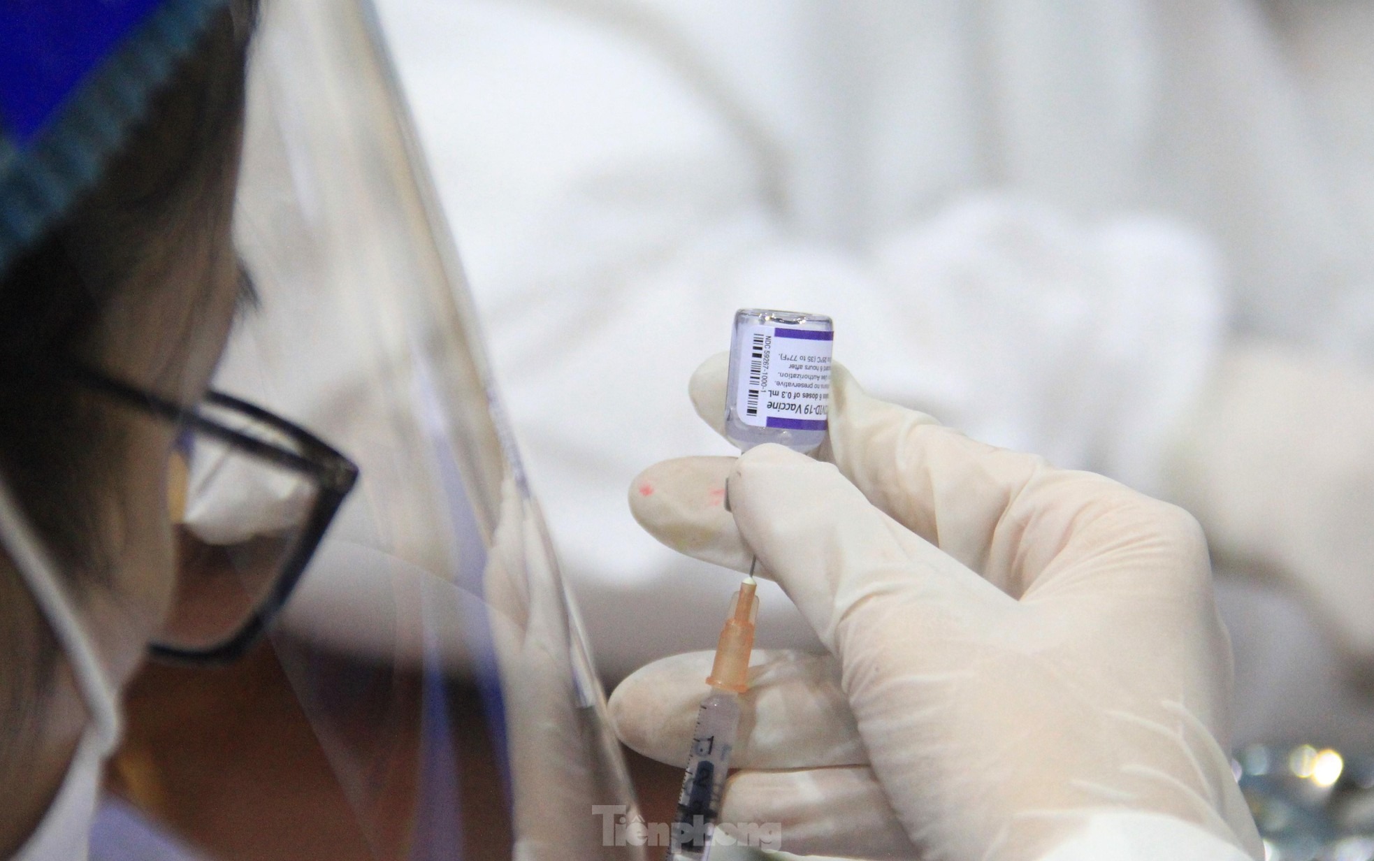 Từng nhóm một được bố trí vào trong khu vực tiêm để tránh tình trạng quá tải.