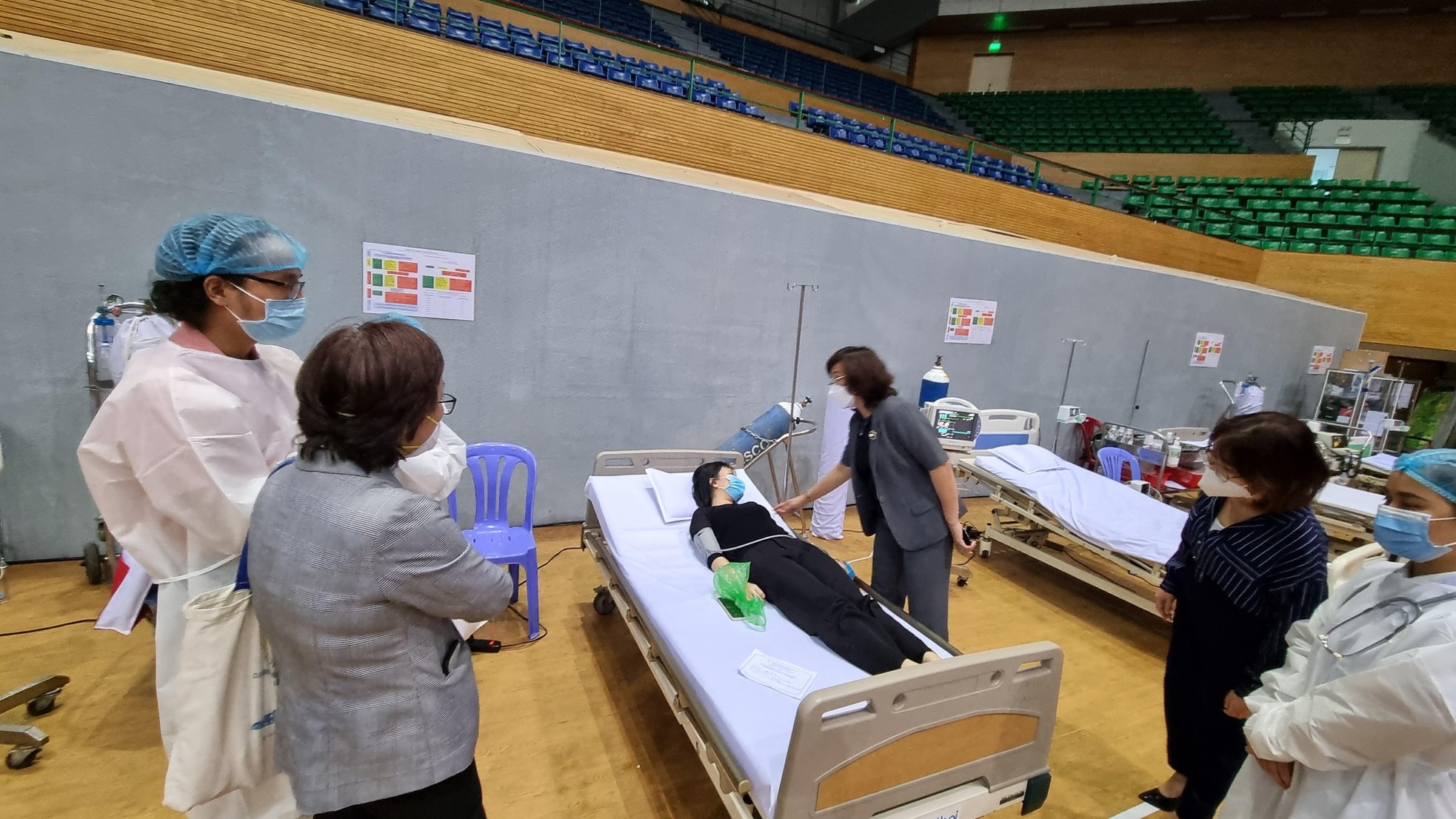 Phó chủ tịch UBND TP Đà Nẵng Ngô Thị Kim Yến thăm hỏi một nữ sinh phải nằm theo dõi sau tiêm do chóng mặt, nôn mửa...