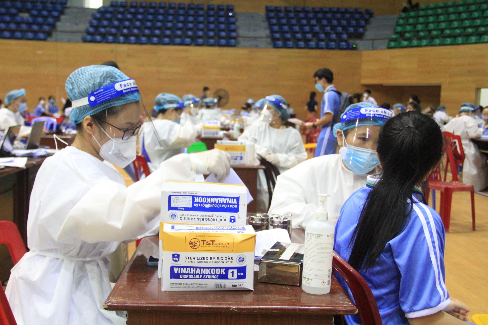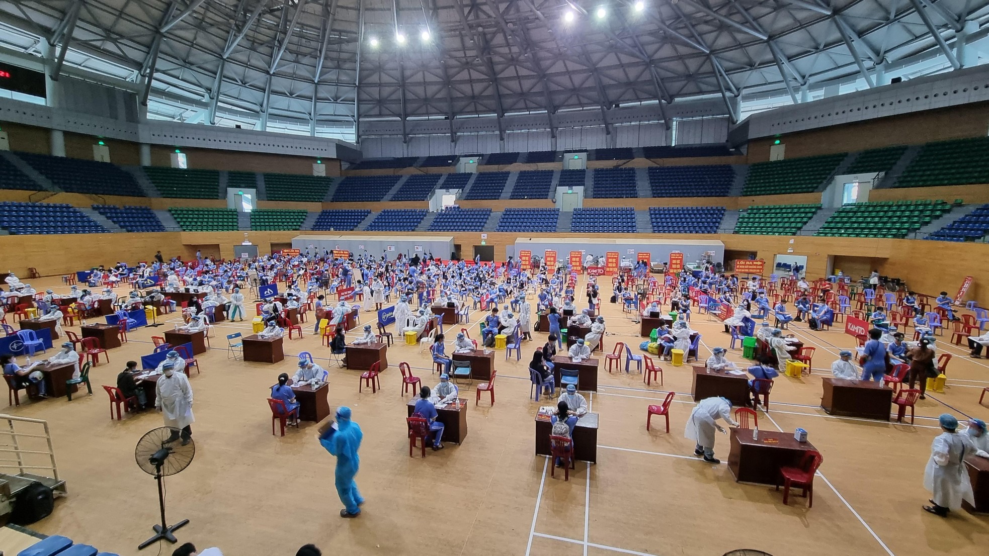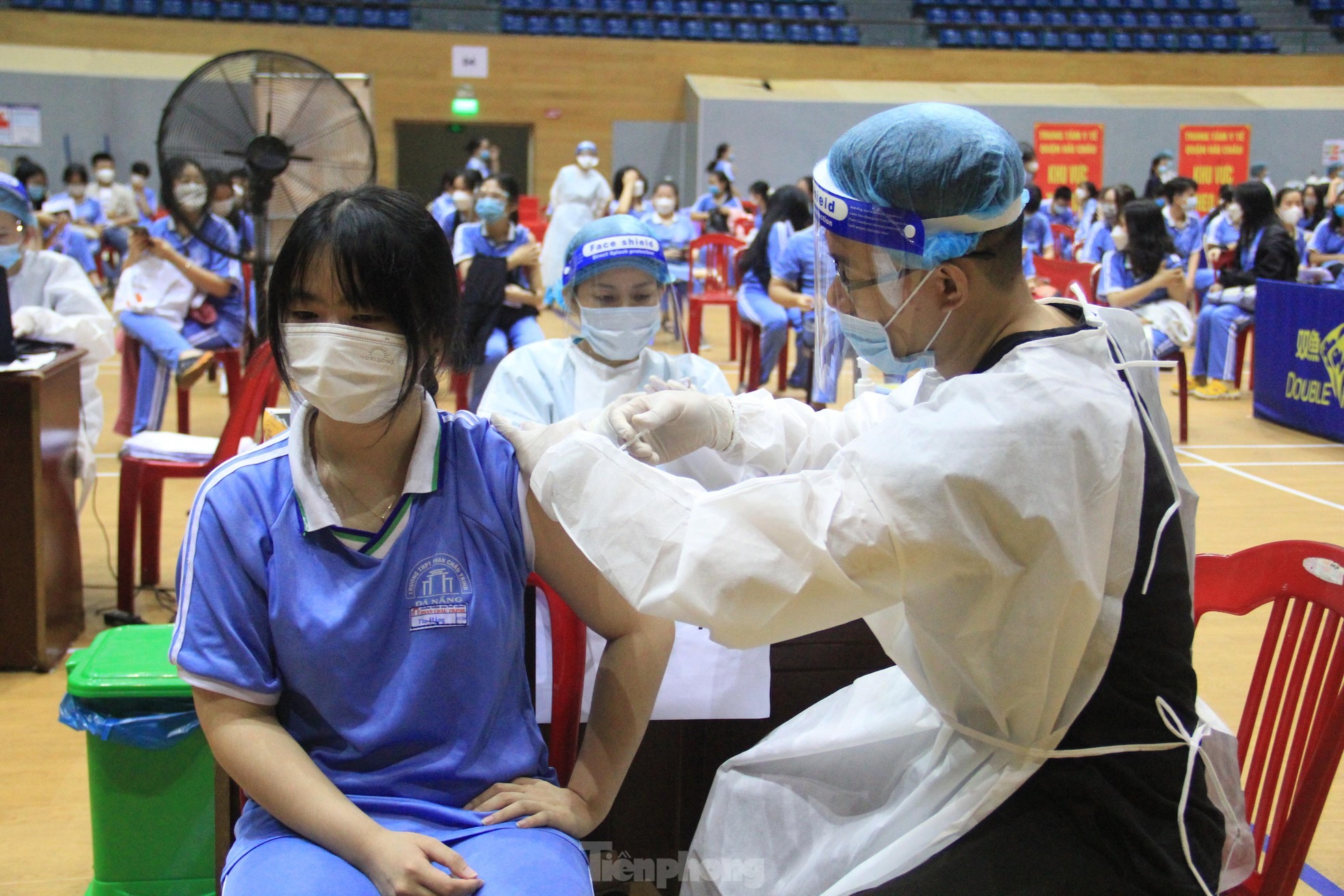 Cung Thể thao Tiên Sơn (quận Hải Châu) là điểm tiêm chủng lớn nhất thành phố. Tại đây bố trí 15 bàn tiêm.