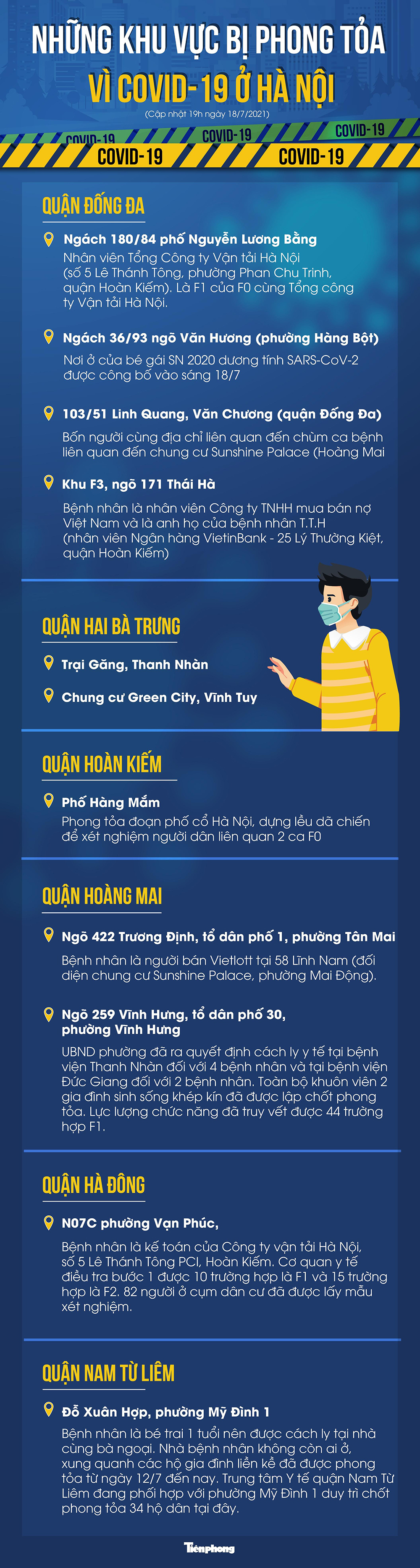 19/07/2021 20:58Những khu vực bị phong tỏa vì COVID-19 ở Hà Nội