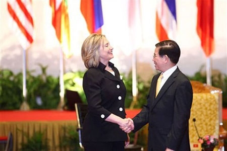 Bên lề hội nghị, bà Clinton gặp Chủ tịch nước Nguyễn Minh Triết. |