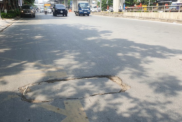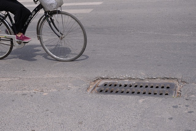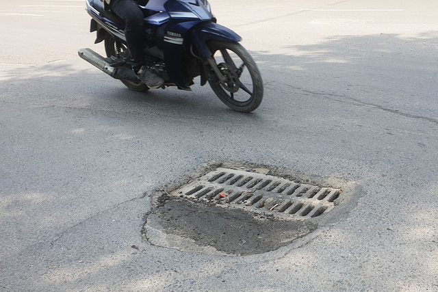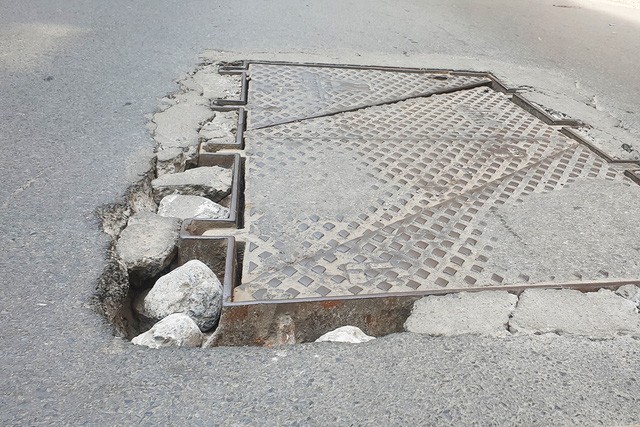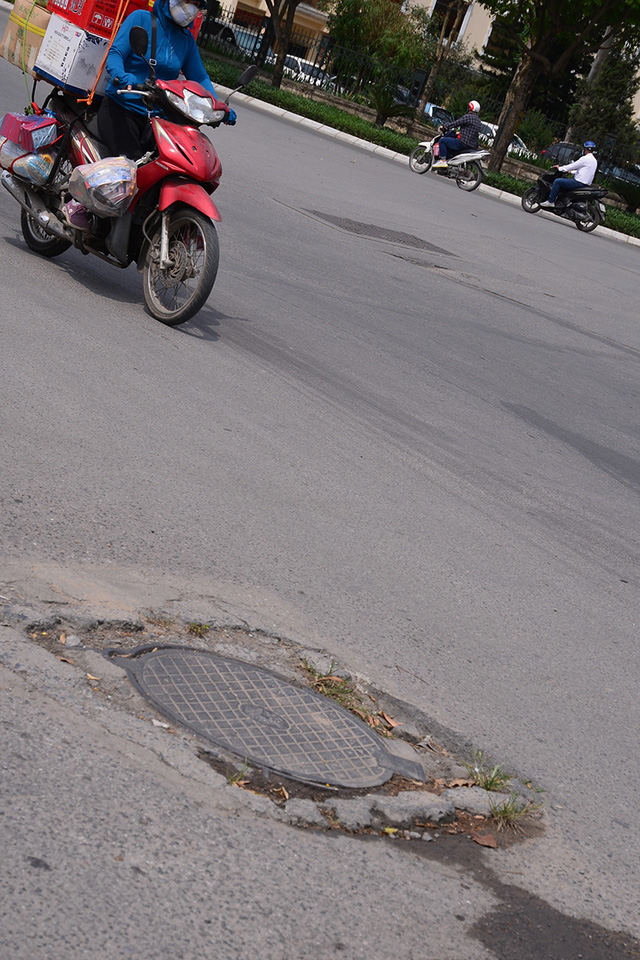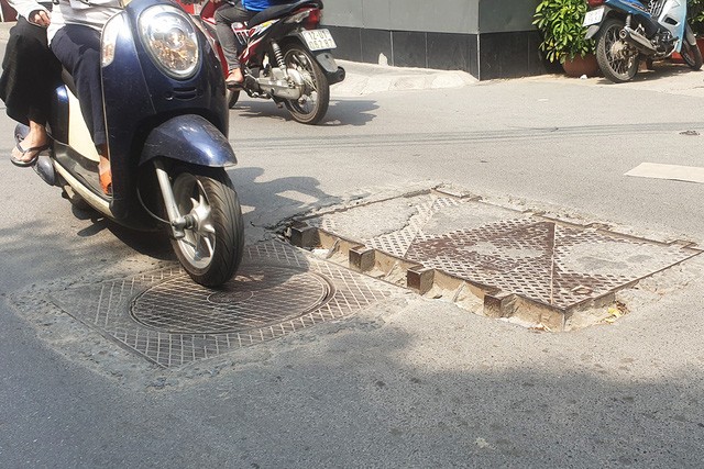 Có những nắp cống ụ lên như một khối bê tổng nổi trên mặt đường. Nhiều cái khác lại võng sâu xuống tạo thành những ổ gà nguy hiểm.