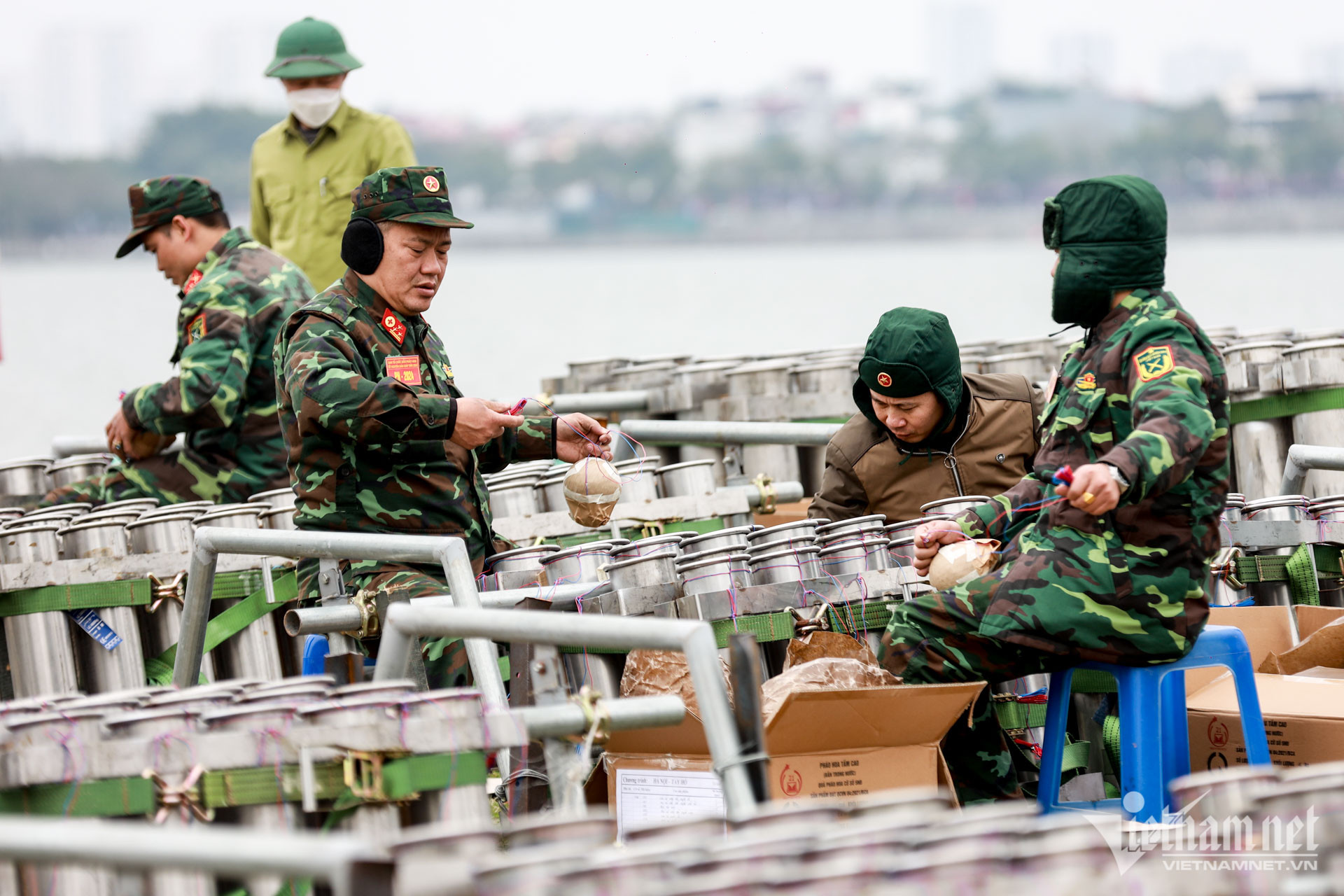 Ngoài địa điểm quen thuộc là hồ Hoàn Kiếm, các trận địa pháo hoa tại hồ Tây, Công viên Thống Nhất, Công viên Cầu Giấy... cũng đã được lắp đặt, sẵn sàng cho màn trình diễn vào đêm giao thừa Giáp Thìn.