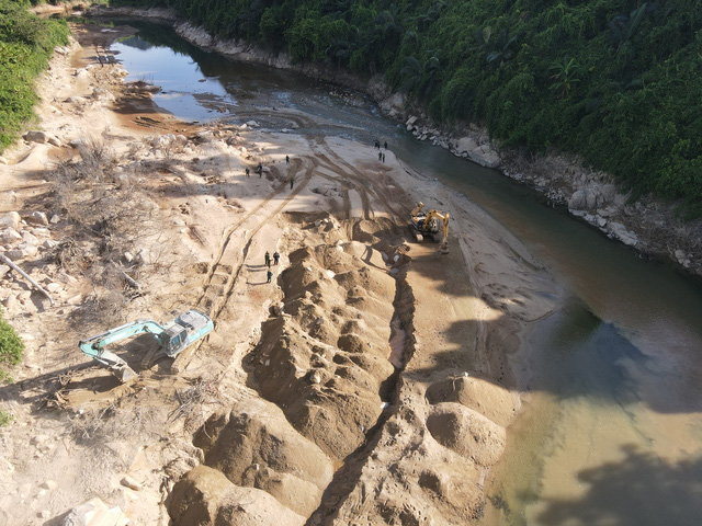 Trong ngày thứ 2 (thuộc giai đoạn 5) tìm kiếm công nhân mất tích ở thủy điện Rào Trăng 3, các lực lượng đang tổ chức tìm kiếm ở khu vực bãi bồi số 1 tại ngã 3 Tam Dần, cách hiện trường sạt lở khoảng 2.5km.