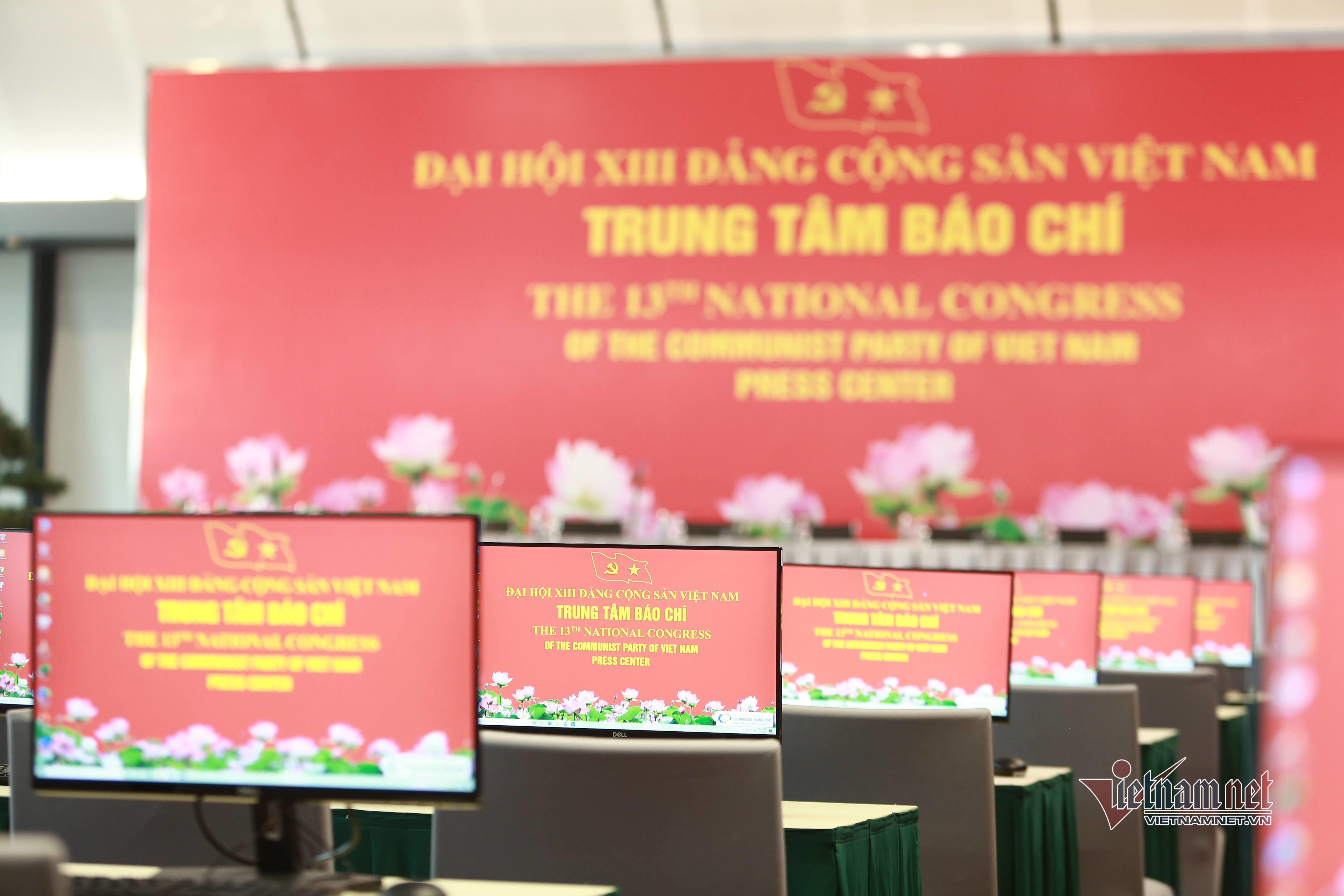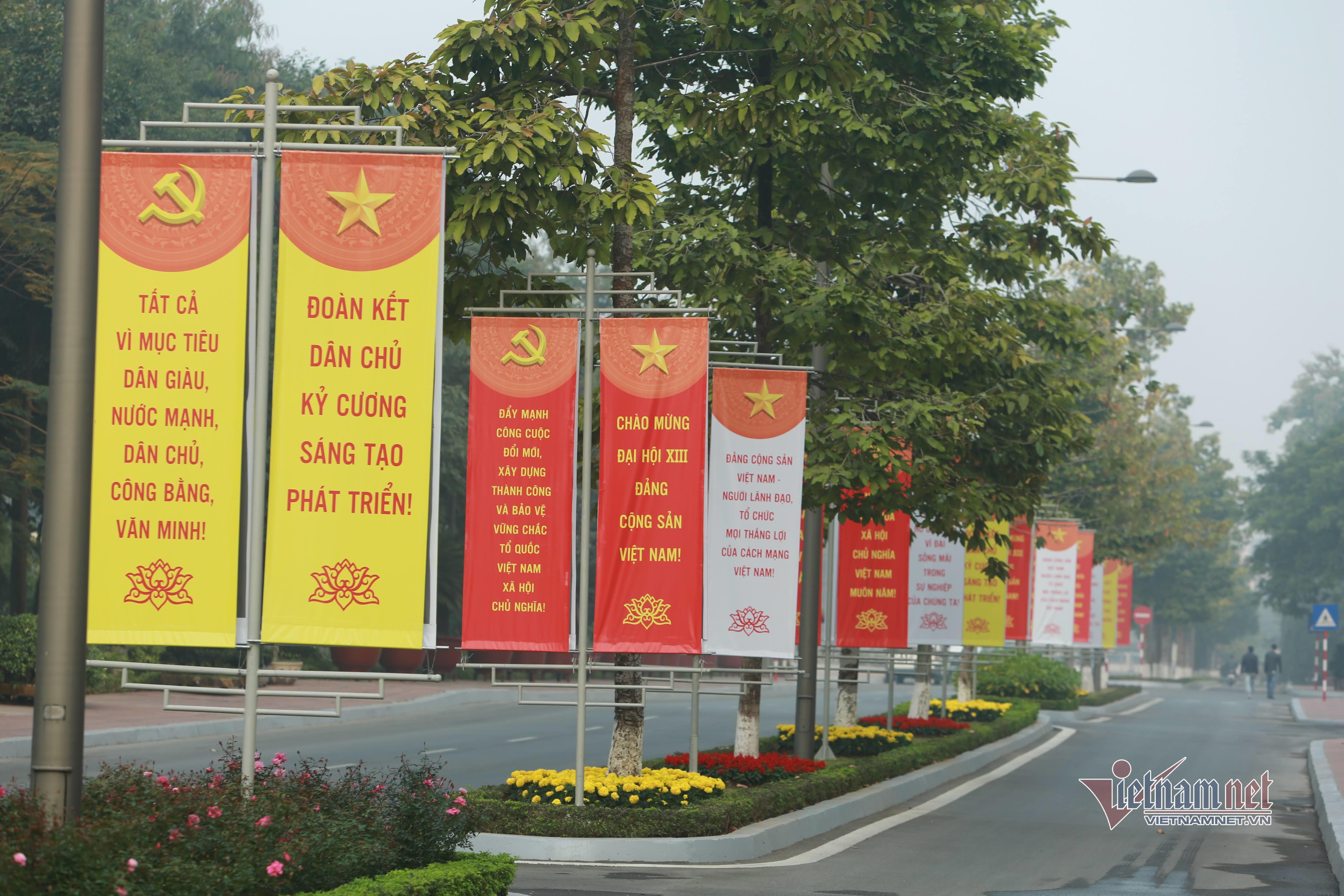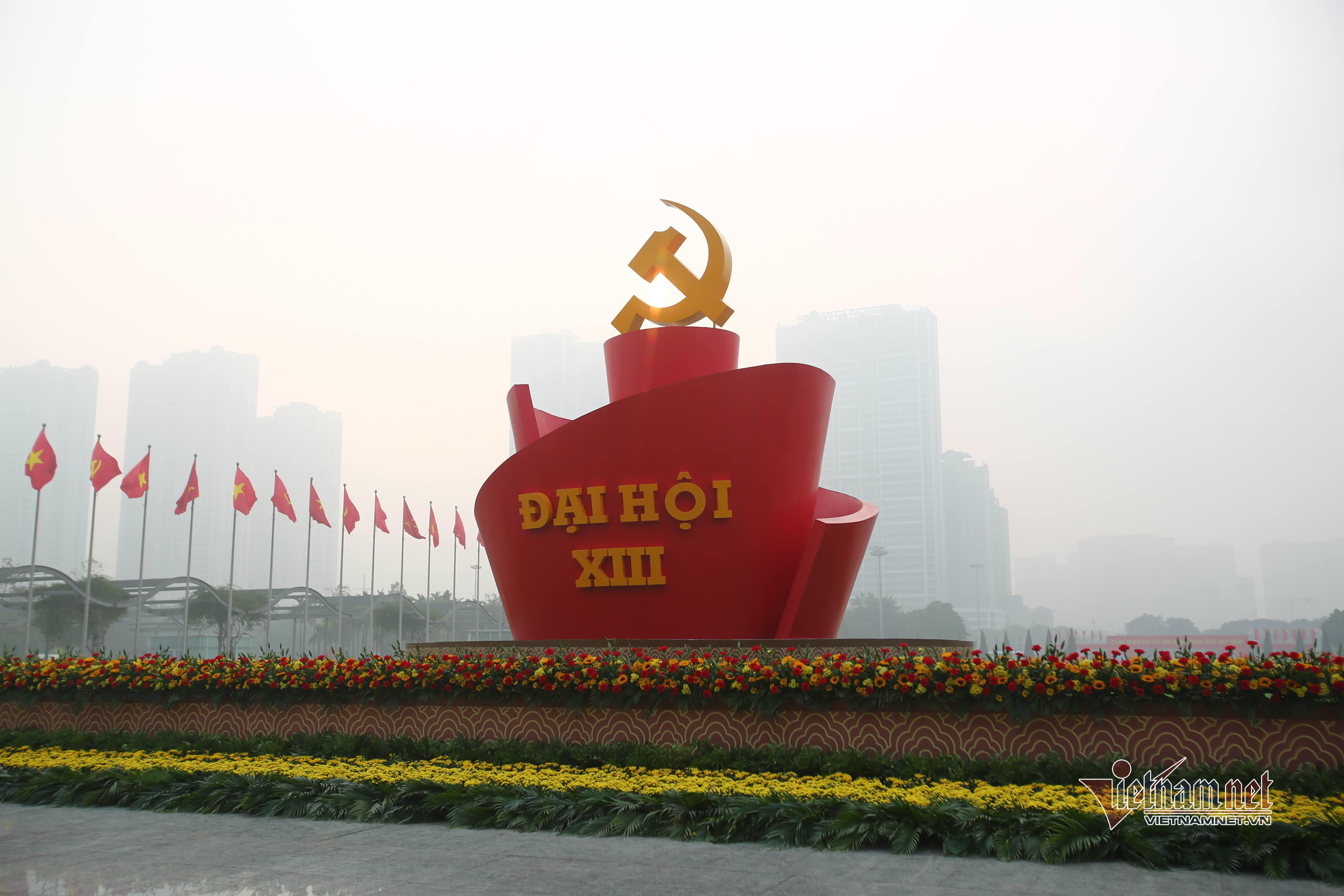 Trung tâm Hội nghị quốc gia những ngày này được trang hoàng rực rỡ, rợp cờ đỏ sao vàng, cờ đỏ búa liềm, băng rôn, biểu ngữ,… chào đón sự kiện trọng đại của Đảng và đất nước.