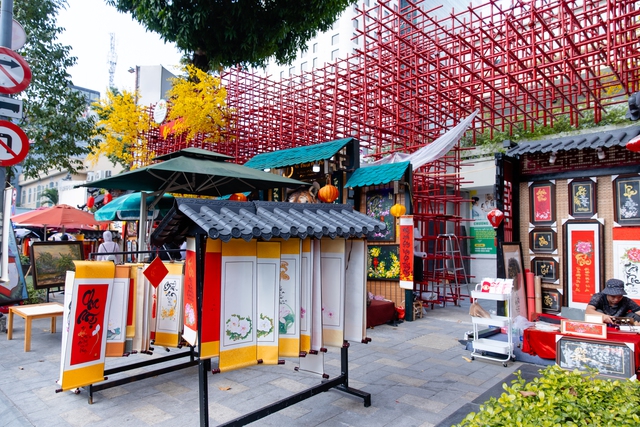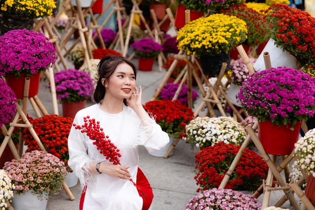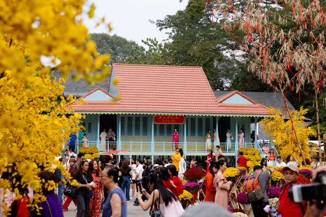 Lễ hội Tết Việt Ất Tỵ 2025 đã thu hút rất đông du khách, thiếu nữ xúng xính áo dài để chụp hình với hoa mai, phố ông đồ đầy màu sắc.