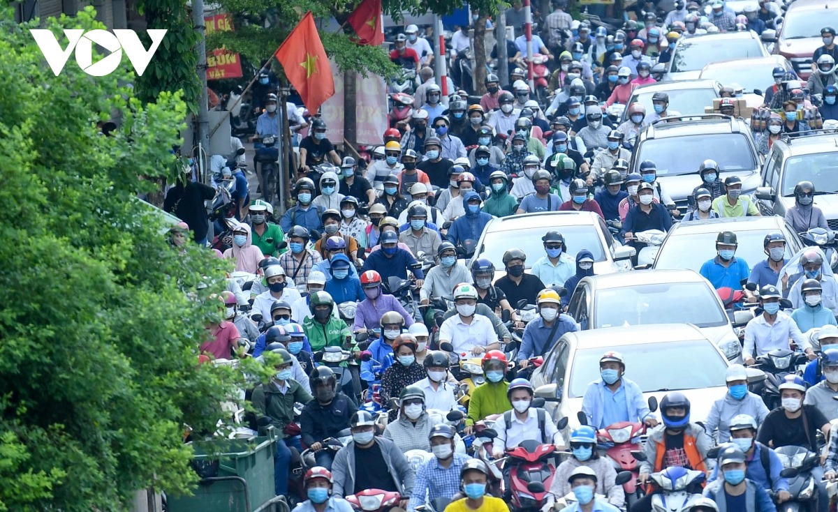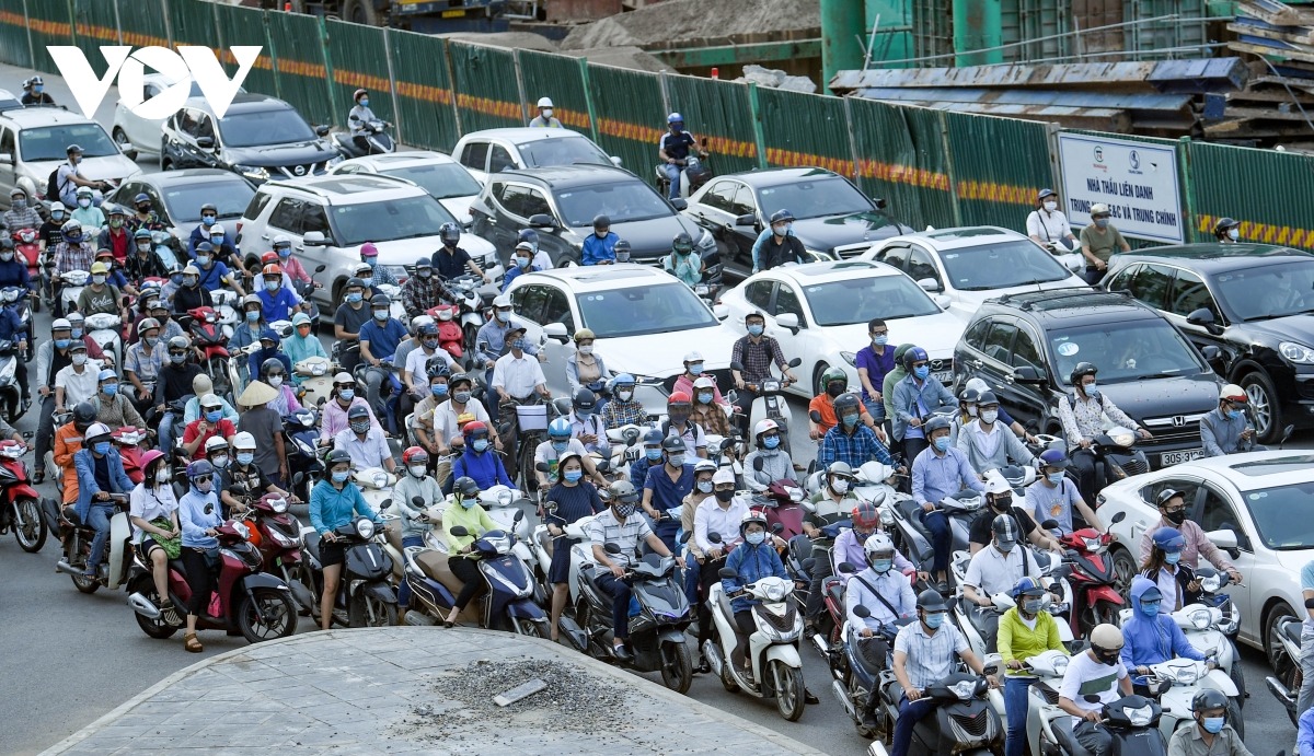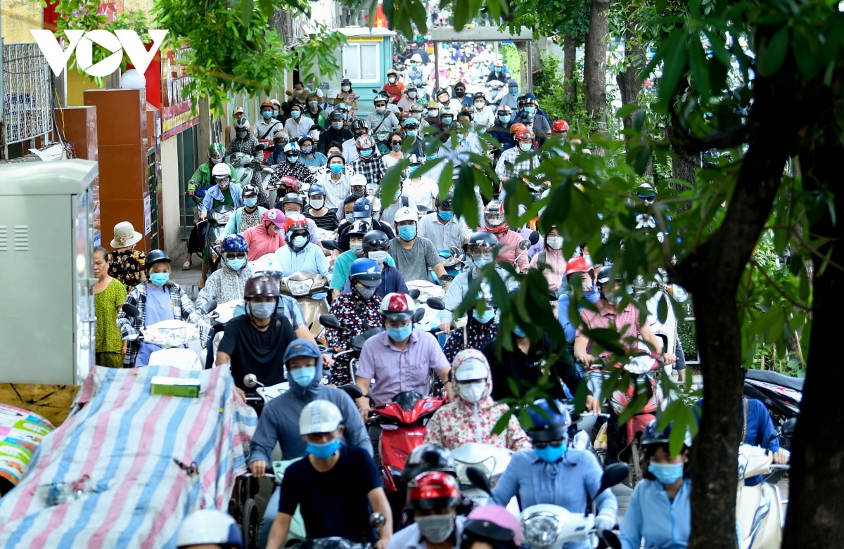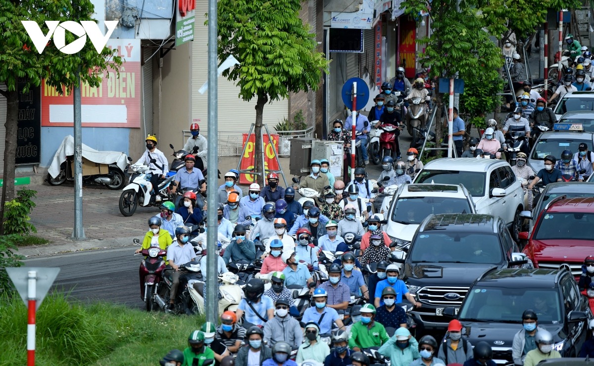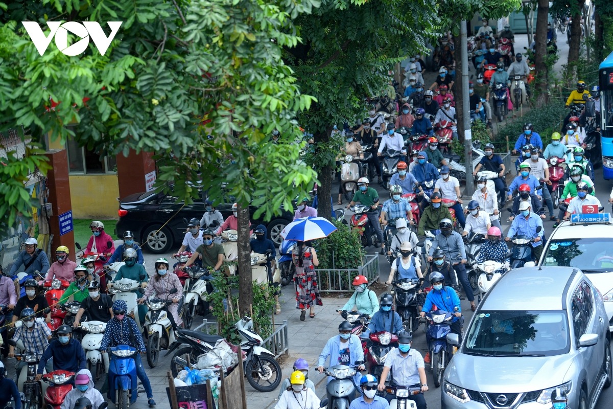 Sau khi TP Hà Nội nới lỏng một số hoạt động phòng chống Covid-19, người dân ùn ùn đổ ra khiến các tuyến đường, hè phố ùn tắc nghiêm trọng.