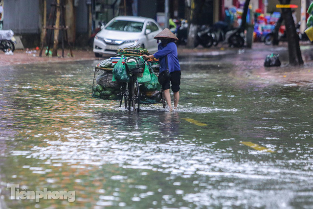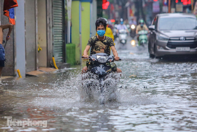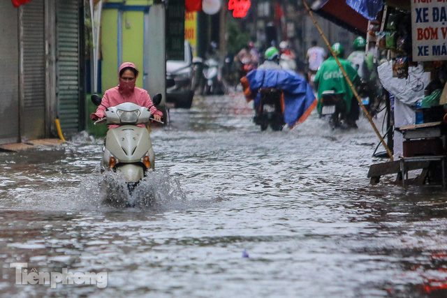 Do ảnh hưởng của hoàn lưu áp thấp nhiệt đới, trong ngày hôm nay, Hà Nội liên tục đổ mưa rào khiến nhiều tuyến phố ngập nặng trong nước, thậm chí tràn vào nhà.