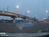 Tuy nhiên, "người tính không bằng trời tính", ngay khi chiếc xe con đang cố lách qua khe hẹp giữa xe 16 chỗ đi cùng chiều và lề đường thì bất ngờ gặp một chiếc xe tải đang dừng đỗ phía trước. Do tốc độ và khoảng cách không còn đủ để xử lý, chiếc xe con đã bị kẹp cứng ở giữa, tạo nên một vụ va chạm đầy trớ trêu ngay tại giao lộ.