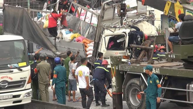 Sau khi tai nạn xảy ra, 1 người trên xe tải đã nhanh chóng được đưa đi cấp cứu, 3 người còn lại bị mắc kẹt trong cabin. Phải đến khi lực lượng cứu hộ - cứu nạn cùng các y bác sĩ đến hiện trường mới đưa 3 nạn nhân này ra ngoài được, song cả 3 đều đã tử vong.