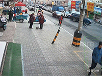 Một người phụ nữ trong lúc đi mua sắm đã kịp bỏ chạy khi cô nhận thấy một chiếc xe tải đang lao nhanh lao thẳng về phía mình.