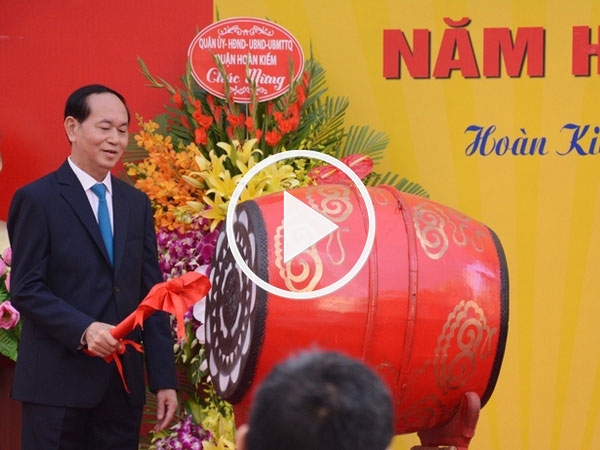 Video: Chủ tịch nước Trần Đại Quang đánh trống khai trường ở Hà Nội