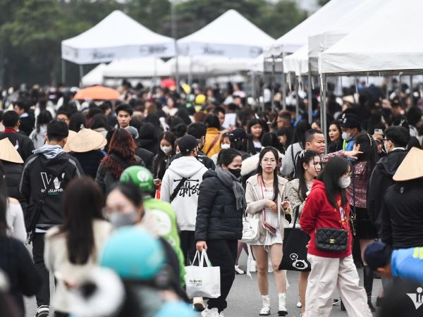 Hàng nghìn khán giả đổ về SVĐ Mỹ Đình trước giờ diễn concert "Anh trai say hi", trong đó nhiều dân văn phòng xin nghỉ làm sớm, chờ hàng giờ mua vé.