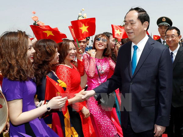 Trưa 11/5, Chủ tịch nước Trần Đại Quang và Phu nhân cùng Đoàn đại biểu cấp cao Nhà nước Việt Nam đến Thủ đô Bắc Kinh, bắt đầu chuyến thăm cấp Nhà nước tới Cộng hòa Nhân dân Trung Hoa.