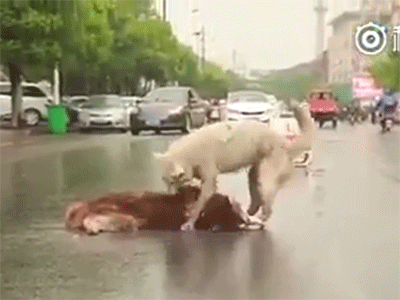 Hình ảnh chú chó liên tục lay gọi người bạn của mình bị tai nạn nằm bất động giữa đường phố khiến người xem không khỏi cảm động.