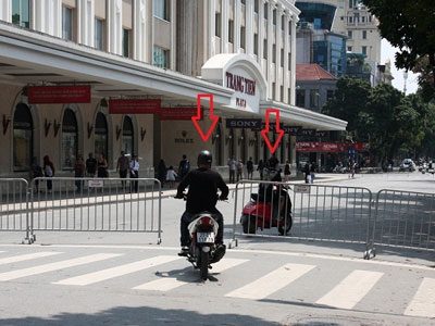Ô tô, xe máy phóng ầm ầm ở phố đi bộ bên Hồ Gươm