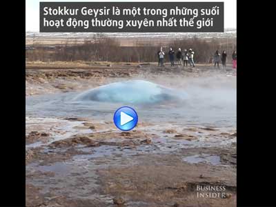Suối nước nóng Stokkur Geysir ở Iceland thường xuyên phun cột nước lớn có nhiệt độ lên tới 80-100 độ C.