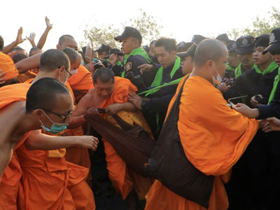 Cuộc phản kháng của các nhà sư bên trong và ngoài chùa Dhammakaya tiếp tục diễn ra quyết liệt vào sáng 20/2 trong khi tung tích vị sư trụ trì bị tố tham nhũng vẫn trong vòng bí ẩn.