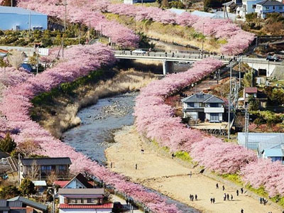 Kawazu, thị trấn nhỏ ở ngoại ô Tokyo, nổi tiếng với hơn 8.000 cây anh đào nở sớm mỗi năm.