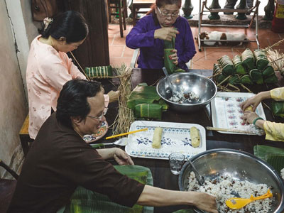 Gia đình ông Hồ Minh Quang là một trong số ít dòng tộc ở TP.HCM vẫn giữ được phong tục tự tay gói bánh tét đón Tết Nguyên đán.
