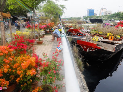 Hàng trăm nhà vườn từ các tỉnh miền Tây đi ghe thuyền chuyển hoa kiểng lên TP.HCM bán Tết tại bến Bình Đông khiến cả dòng kênh rộn ràng ngập sắc xuân.